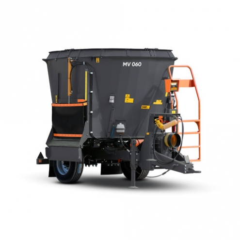 Кормораздатчик-смеситель MV 060 входит в линейку одношнековых смесителей-раздатчиков кормов с вертикальным расположением шнека. Модель предназначена для доизмельчения, смешивания и раздачи полнорационной кормовой смеси (ПКС) крупному рогатому скоту в кормушки и на кормовой стол. Агрегатируется с тракторами тягового класса 1,4. Грузоподъемность составляет 2000 кг, а объем бункера — 6 м³ (с возможностью увеличения до 7,5 м³ с надставным бортом).
