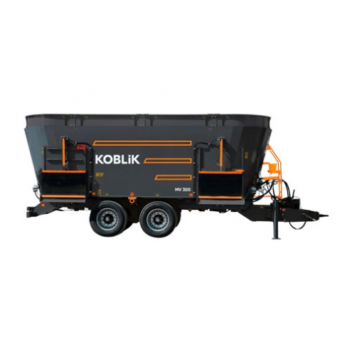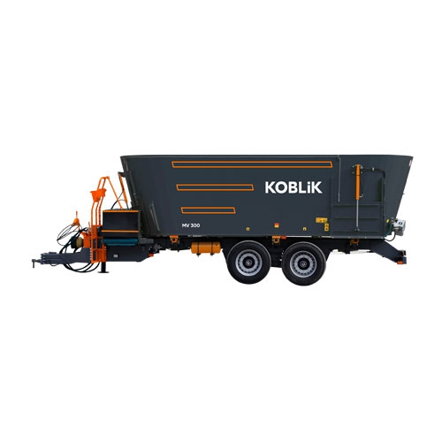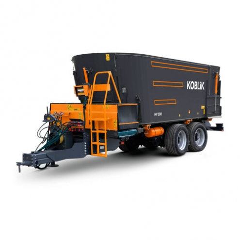 Кормораздатчик-смеситель MV 300 входит в линейку трёхшнековых смесителей-раздатчиков кормов с вертикальным расположением шнеков. Модель предназначена для доизмельчения, смешивания и раздачи полнорационной кормовой смеси (ПКС) крупному рогатому скоту в кормушки и на кормовой стол. Агрегатируется с тракторами тягового класса 3,0–4,0. Грузоподъемность составляет 11 000 кг, а объём бункера — 30 м³.